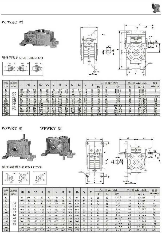 WPWKO,WPWKT,WPWKV型型號參數圖表